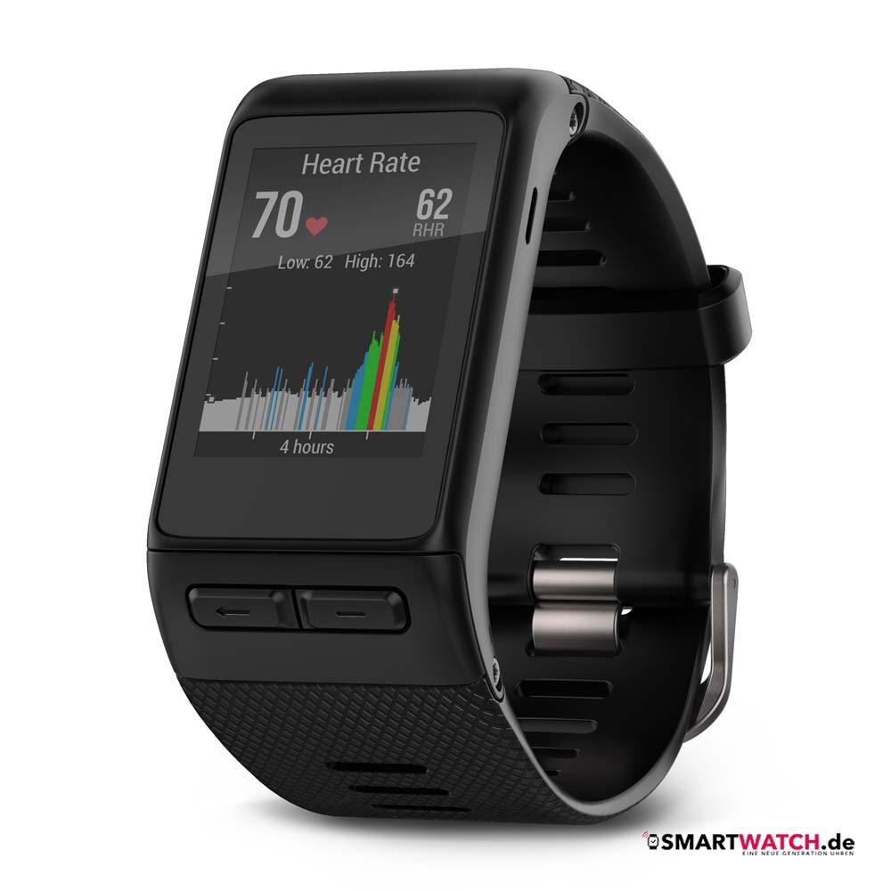 Die Garmin vivoactive HR ist eine multifunktionale Sport-GPS-Smartwatch mit umfangreichen Funktionen für nahezu jede Sportart und praktischen Smart-Notifications für den Alltag. Mit der Garmin eigenen Technologie für die Herzfrequenzmessung am Handgelenk können Herzfrequenzgurt zuhause gelassen und sogar rund um die Uhr die Herzfrequenz gemessen werden. Anhand der daraus ermittelten Daten berechnet die Garmin vivoactive HR den Kalorienverbrauch und misst die Intensität eigener Aktivität.