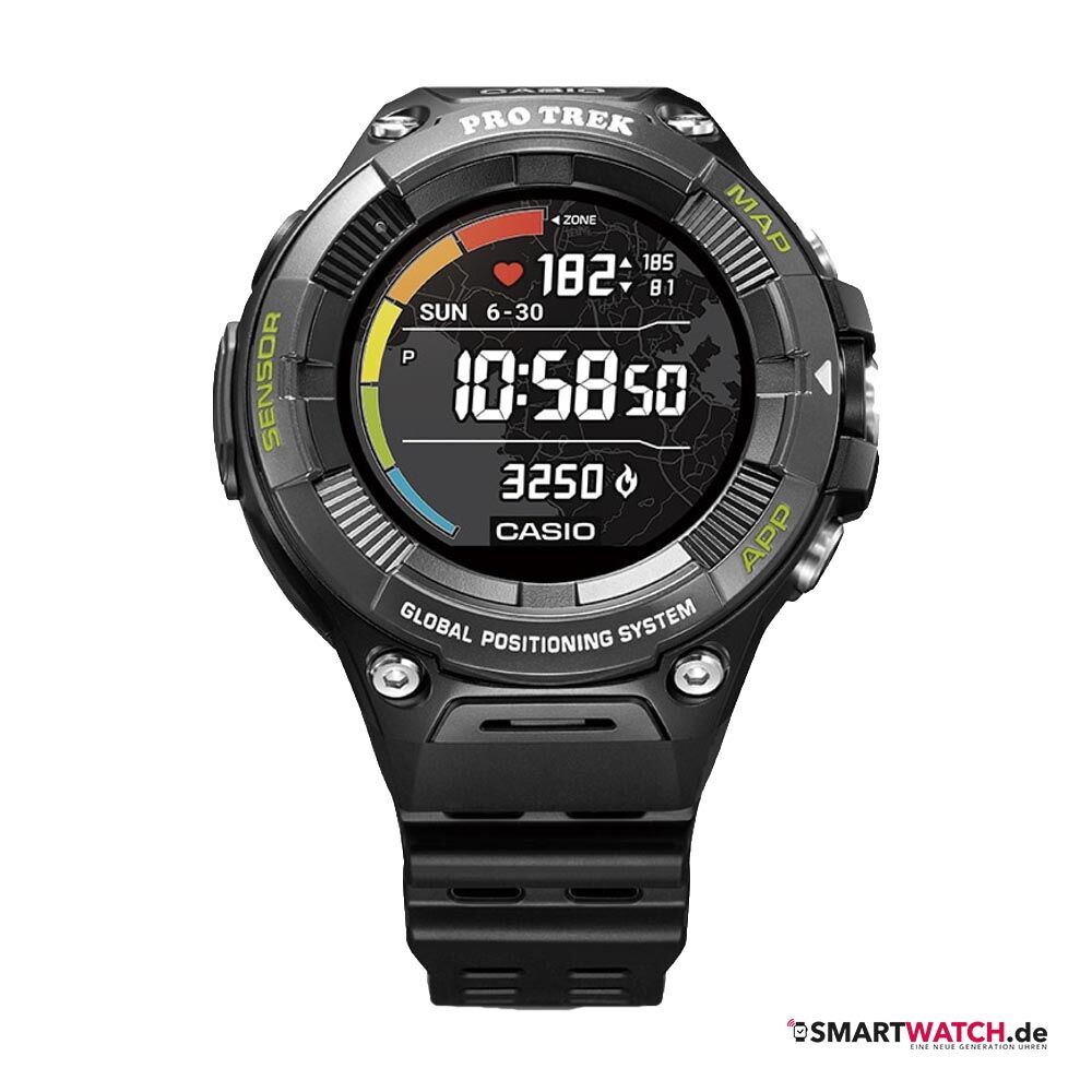 Nachdem Casio bereits drei Smartwatch-Generationen aus seiner Pro-Trek-Serie veröffentlicht hatte, präsentierte die japanische Marke im Sommer 2019 die WSD-F21HR. Die wesentliche Neuerung dieser intelligenten Uhr besteht darin, dass sie mit einem optischen Herzfrequenzsensor ausgestattet ist. Das gilt als absolutes Novum beim Hersteller. Abermals zeichnet sich das Wearable als ein sehr outdoortauglicher, widerstandsfähiger Begleiter aus. Zwei übereinander positionierte Displays verhelfen der Smartwatch zu einer akkuschonenden Arbeitsweise. Zusätzlich bieten sich den Nutzern verschiedene Energiesparmodi, mit denen individuelle Anpassungen gemacht werden können. Die integrierte Aktivitäts-App hält verschiedene Sportarten bereit, die vom Laufen bis hin zum Angeln reichen. Durch das Betriebssystem Wear OS haben die Träger die Gelegenheit, zusätzliche Anwendungen zu installieren und damit das Können der Smartwatch zu erweitern.