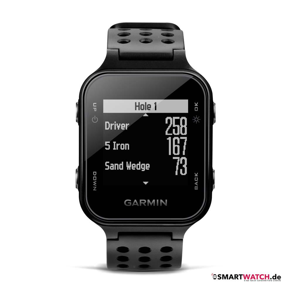 Auf 40.000 vorinstallierten Golfplätzen können Distanzen, Hindernisse und Karten der Plätze angezeigt und für detaillierte Golfspielanalysen genutzt werden. Die Garmin Approach S20 erkennt automatisch auf welchem Golfplatz gerade gespielt wird und wie weit man sich vom nächsten Grün entfernt befindet. Die Disanzdaten werden über den integrierten GPS-Empfänger ermittelt, welche auf dem Display mit detaillierter Karte samt Hindernissen, Doglegs und Layups angezeigt werden können.
