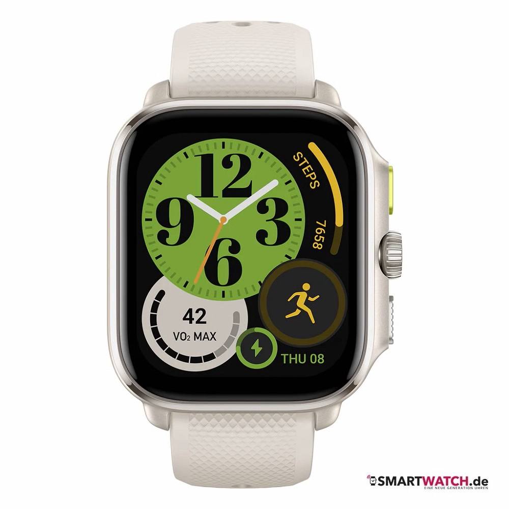 Die Amazfit Cheetah Square ist eine vielseitige Smartwatch mit einem schlanken und modernen Design. Sie wird in der Farbausführung „Winner Champagne“ angeboten, die ein beiges Armband und ein silbernes Gehäuse kennzeichnet.