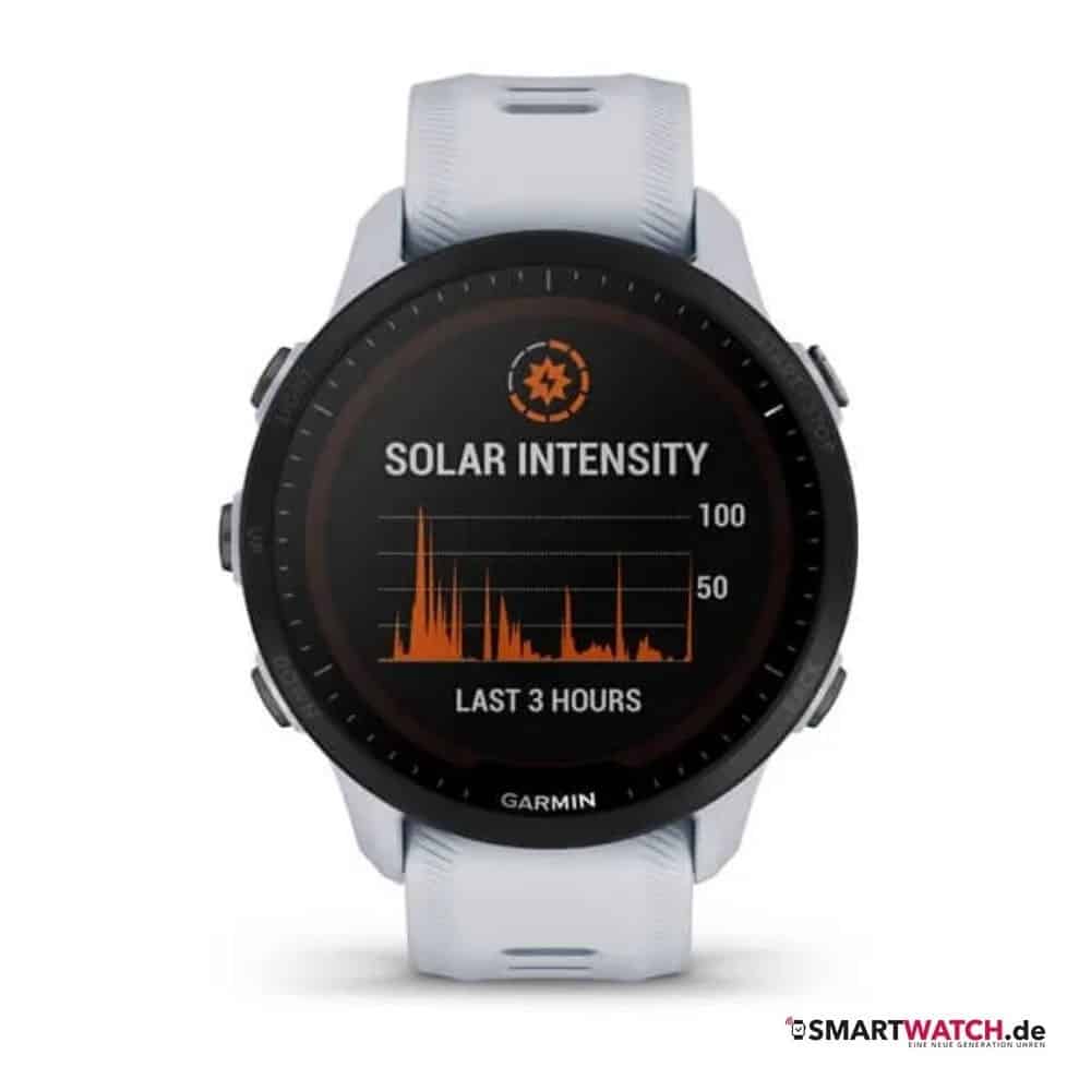 Zwar gibt es vier Ausführungen, doch Garmin setzt auf zwei grundlegende Farben: Weiß und Schwarz. Kaufinteressenten wählen, ob sie ein Solarmodell oder eine Standardvariante wünschen. Der Forerunner 955 Solar ist zusätzlich dazu in der Lage, seine Akkulaufzeit durch das Nutzen von Sonnenlicht zu verlängern.