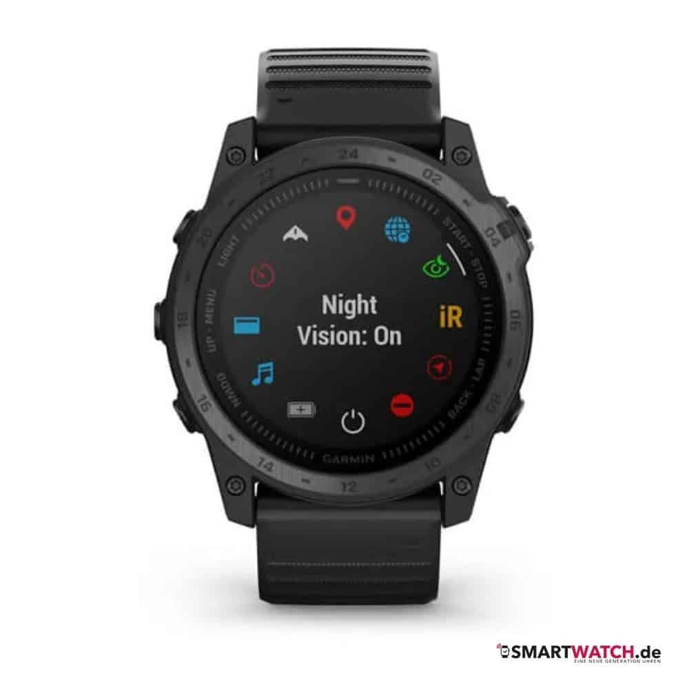 Die Garmin tactix 7 ist – wie es ihr Name bereits offenbart – in erster Linie eine taktische Uhr. Dementsprechend bringt sie die dafür erforderlichen Funktionen mit und kann auch für militärische Zwecke verwendet werden. So verfügt sie unter anderem über einen Tarnmodus. Auf Wunsch sichert sie dann nicht mehr die GPS Position und teilt diese auch nicht. Gleichzeitig werden die Kommunikation und die drahtlose Konnektivität abgeschaltet.