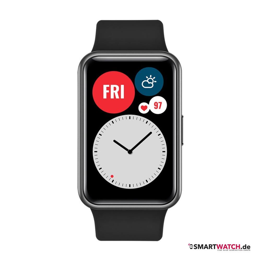 Erstmals setzt der chinesische Hersteller bei der HUAWEI Watch Fit auf ein eckiges Gehäuse. Die bewusst minimalistisch gestaltete Smartwatch zeichnet sich durch ihr geringes Gewicht sowie ihre schlanken Maße aus. Sie ist zudem wasserdicht und damit zum Schwimmen geeignet. Der Bildschirm bietet auf einer Diagonale von 1,64 Zoll ausreichend Übersicht, um dort sämtliche Fitness- und Gesundheitsdaten sowie eingehende Benachrichtigungen darzustellen. Insgesamt 96 Aktivitäten unterstützt dieses Wearable, wobei es zusätzlich animierte Trainings offeriert. Die HUAWEI Watch Fit erfasst Parameter wie die Herzfrequenz, den Schlaf, die Sauerstoffsättigung im Blut sowie den Stress. Dank ihres herstellereigenen Betriebssystems bietet sie mit Android und iOS gleichermaßen Kompatibilität. Ihre Akkulaufzeit beträgt bis zu zehn Tage, wobei die Schnellladeoption als Besonderheit zu nennen ist.