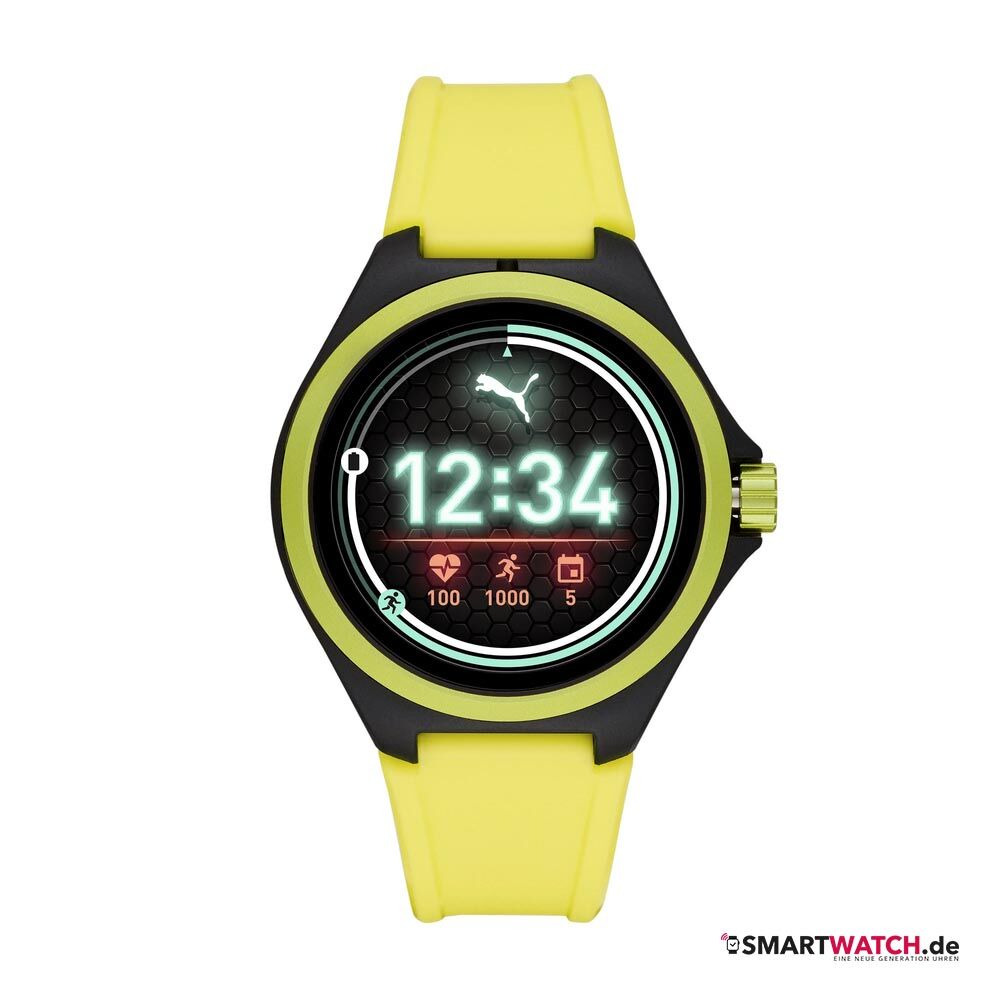 In drei Farboptionen bringen Fossil und Puma ihre erste gemeinsame Smartwatch auf den Markt. Eine besonders neutrale Variante stellt das komplett in Schwarz gehaltene Modell dar, dessen Lünette sich in einem Anthrazitton leicht abhebt. Optional dazu dürfte die Ausführung in Weiß mit einer roségoldenen Lünette insbesondere die weibliche Zielgruppe ansprechen. Komplettiert wird das Trio von der auffälligsten Ausführung, die eine neongelbe Lünette und ein neongelbes Armband mit einem schwarzen Gehäuse kombiniert. Die intelligente Uhr ist bis zu 50 Meter wasserdicht und vermag somit ohne Probleme Schwimmtrainings mit ihren Trägern zu bestreiten.