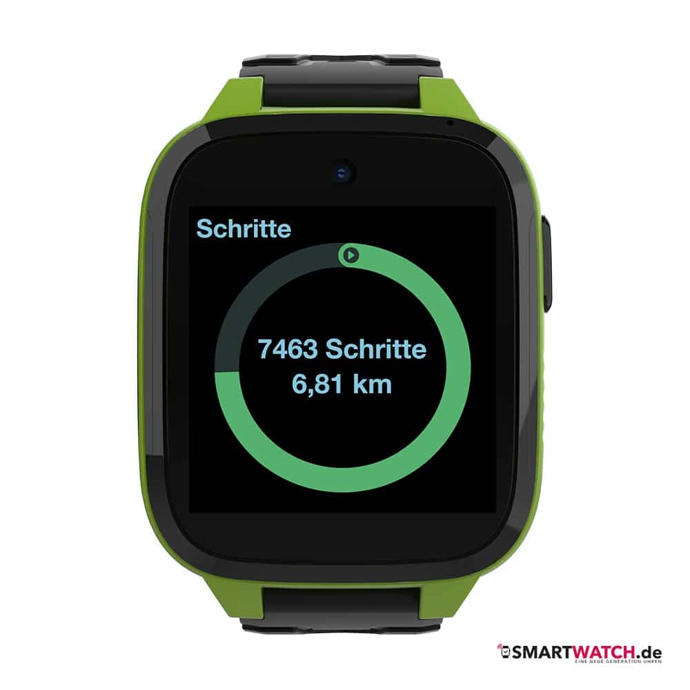 Oberhalb des Touchscreens befindet sich eine Kamera mit 2 Megapixeln. Sie erlaubt den Kleinen, kurze Videos aufzunehmen und sie an die gespeicherten Kontakte zu versenden. Standesgemäß sind auch ein Lautsprecher und ein Mikrofon in die Kinder Smartwatch integriert. Sie ist nach dem Standard IP68 zertifiziert worden. Das bedeutet, dass ihr etwas Wasser noch keine Probleme bereitet. Vor dem Schwimmen ist sie jedoch abzulegen.